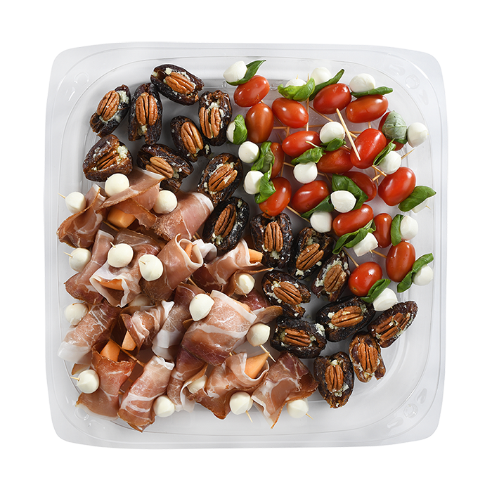 Be ready in a flash with handmade hors d'oeuvres including prosciutto-wrapped cantaloupe, blue cheese-stuffed dates, and caprese salad skewers.