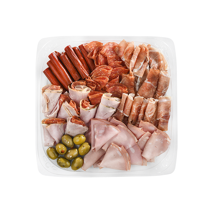 We've prepped the perfect spread to create mouth-watering sandwiches. Includes prosciutto, pepperoni bites, spicy Genoa salami, mortadella, rosemary ham and stuffed olives.