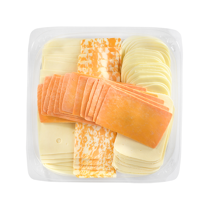 Conveniently sliced for building amazing sandwiches. Includes cheddar, provolone, creamy havarti, Swiss and marble cheddar.