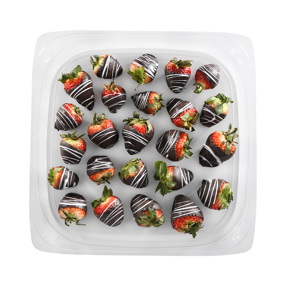 You can't go wrong with this combination. Fresh, juicy strawberries dipped in dark and white chocolate.